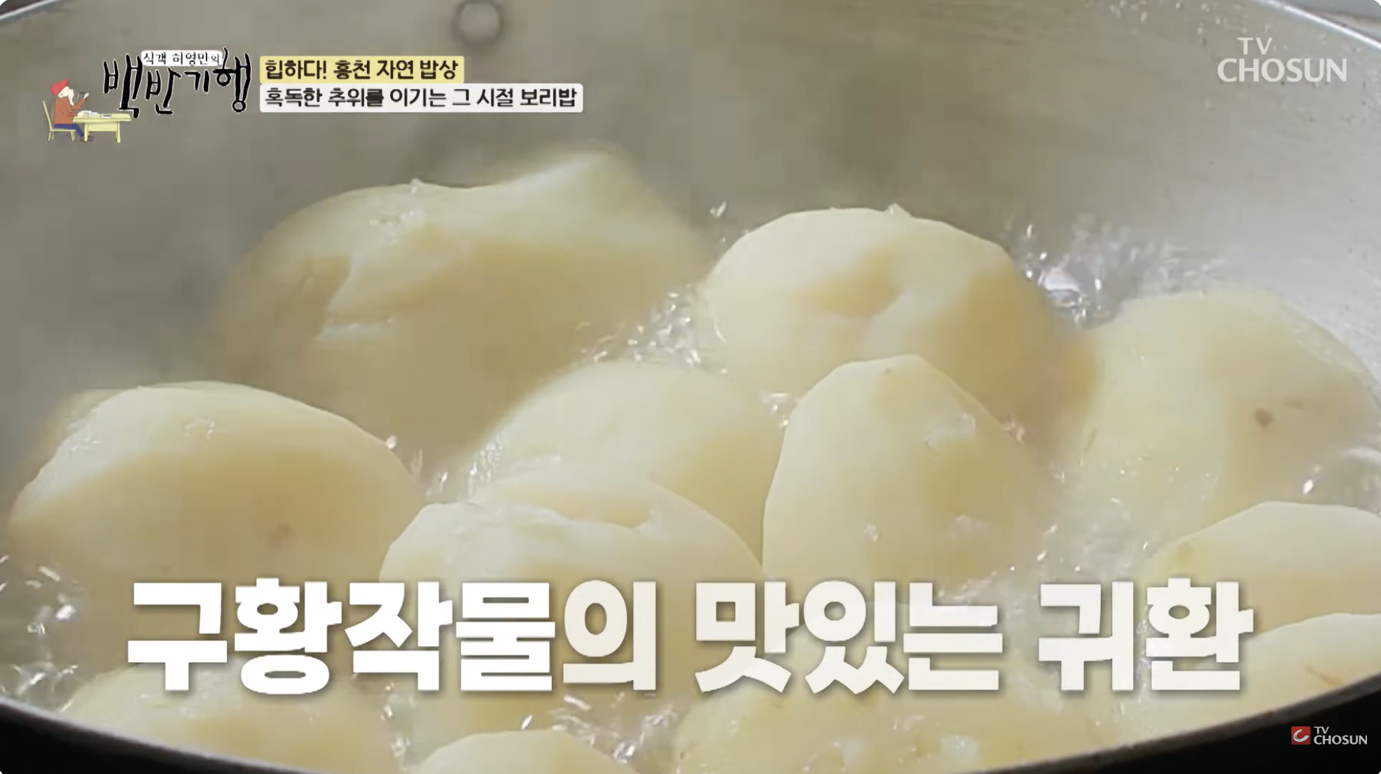- 보리 특유의 까슬한 식감을 감자가 중화